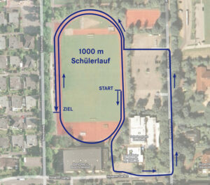 Auf der Strecke über einen Kilometer geht es bereits kurz aus dem Stadion heraus. Einmal an der Schwimmhalle vorbei und über den Parkplatz wieder zurück auf die Laufbahn, können Kinder hier die ersten Erfahrungen auf ungewohnterer Strecke machen.